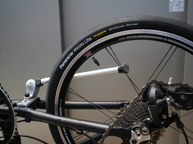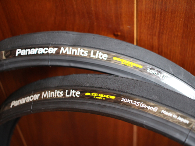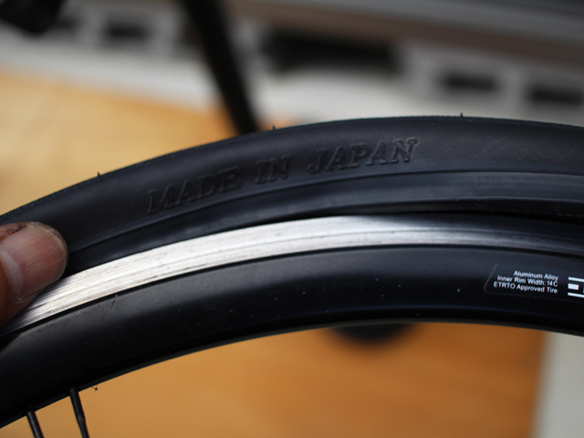| 箱から取り出すと、新品タイヤのゴムの匂いがしました。 タイヤのロゴが美しい。 |