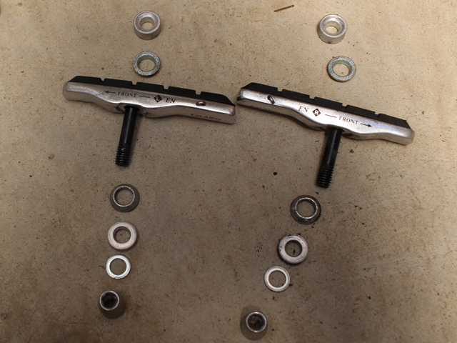 | さかさまの自転車を元に戻し、ブレーキパッドを付けます。 ブレーキパッドの調整をして全作業終了。 |