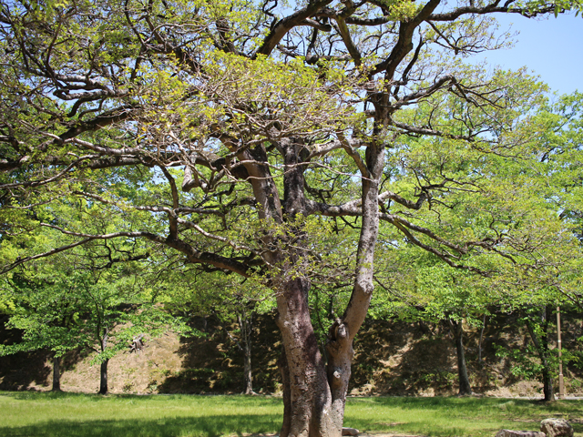 | 子供の頃によく登った木です。(2016年5月5日撮影) 全体的に枝はもっと太かったような気がするのですが・・・、剪定が繰り返されて今の姿になったのかもしれませんね。ま、元気そうで、何よりでした。 |