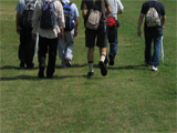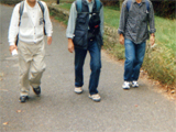 | 冷たい風が頬に触れ、冬の訪れを感じさせる紅葉の季節に、軽登山ハイキングに参加したときのことでした。太陽に映える紅葉(もみじ)の色はまことに美しいが、太陽に向かって、葉の裏側から透かして見た色もまた格別に美しいということを初めて知りました。 ハイキングというのは意外と楽しいもので、常に新しい発見があって、嬉しくなったり驚いたりの連続です。で、なぜ楽しいのかを考えてみた。 人間は太古から歩く動物である。獲物を追いかけるときや危険から逃れるときなど瞬間的に走ることもあるが、基本的には時速4〜5qで歩いて移動することを続けてきた。ということは、目で見たものや耳で聞いたものを脳で知覚する速さも、時速4〜5qに合わせてあるということだ。つまり、歩いているときが最も情報量が多いのだ。(もちろん自説ではあるが・・・)乗り物で移動すると短時間に広い範囲の情報は入るけれど、見逃すものもたくさんあるのではないだろうか。 歩くことのみを意識したウォーキングや、山歩きを中心としたトレッキングなどには今のところ興味がありません。景色を楽しみたい、自然に溶け込みたい、ただそれだけなのです。だからハイキングなのだ。 ハイキングには史跡などを巡る散策コース、自然観察を楽しむ軽登山コースなどさまざまなスタイルがありますが、目的と体力に合わせて自由に楽しむことができます。僕は、人間への回帰ともいえるこの行動に、これからも機会があれば参加していきたいと思っています。(2008.12.05) |