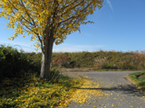 | 今年の春、陽気に誘われて田舎道をサイクリングしていたとき、一本の木に目が留まった。まわりに人家はなく、田んぼとため池があるだけで、この木だけがポツンと佇んでいる。それはまるで、俗世から離れて静かに住む世捨て人のようだった。 さては、隠棲への憧れがこの木の姿とダブったか・・・ 葉はまだなかったが、落ち葉の残骸を見て銀杏の木だとわかった。実が落ちた跡はないので、たぶん雄株なのだろう。「君は、男の子なんだな」二週間後に来てみたら、小さな葉が出ていた。紛れもなく銀杏の木だった。そして思わず、晩秋の季節の、黄色に染まった美しい姿を想像していた。 「よし、この木がその姿になるまで見届けてやろう」と、そう思った。 4月下旬、一週間しか経っていないのに、葉がだいぶ大きくなっていた。なんだか、すくすく育っているって感じで、微笑ましい。 5月下旬、初夏を迎えて、ようやく葉が出揃ったようだ。木の形はすごく良くなったが、葉の色はまだ薄い。青春真っ只中って感じだな。 7月下旬、真夏になると、葉の色がだいぶ濃くなってきた。梅雨の時期にはなかなか会いに来られなかったが、その間にうんと成長したということだろう。 8月中旬、お盆を少し過ぎた頃、この日はなんと、木に近づくと枝が揺れだしたのである。そういえば、木は笑う、という話を聞いたことがある。「俺のことがわかるのか?」と思ったのだが、ただ単に風が吹いているだけだった。 さわやかな秋晴れの日、あちこちの葉が黄色に変わり始めようとしていた。この日、遠く離れたところから写真を一枚撮ったのだが、ポツンと佇むその姿を見て、なんとなく孤高を感じた。間違いなく、そんな姿に惹かれている。二週間後の11月上旬、秋も深まり、かなり葉が黄色くなってきた。さあ、これからどんな色になっていくのだろう。 いよいよだな。ワクワク、ドキドキ・・・ さらに二週間後、ついにその日はやってきた。木の全体が美しい黄色になっているではないか。まだいくらかの黄緑色の葉があるが、それにしても美しい。しばらくの間、ぼーっと眺め続けたのだった。これこそが銀杏の木だと・・・ その一週間後の日曜日は、さらに美しくなっていた。とても鮮やかな色だ。 ところが、である。なんと半分ぐらいの葉が散ってしまっていたのだ。ということは、最高の姿を見てやれなかったってことか。たった一週間しか経っていないのに・・・、週末にしか会いに来られないサラリーマンの身分が恨めしい。 ま、そんなことを恨んでみても仕方がない。別れを惜しむかのように、枝にある葉はもちろんのこと、落ち葉の姿もしっかりと目に焼き付けた。自然に散ったその姿も、それはそれでまた美しい。最後に、真下から木を見上げると、思わず抱きしめたくなった。あ、この木は男の子だったな。 「美しい姿を見せてくれて、ありがとう。また会いに来るね・・・」 この木の物語を、大きい写真(14枚)で見る |