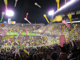 | 友人に誘われて、久しぶりに甲子園球場に行きました。阪神タイガースのファンではあるが、テレビ観戦ばかりで、球場には数えるほどしか行ったことがない。「入場券があるんだけど、一緒に行かないか」と誘われたときは、「行く行く、その日は予定もないし絶対に行く」と、すかさず返事をしていました。 二人とも仕事がオフの日だったので、僕は「開門の時刻と同時に入ろう」と提案しました。提案というより強い希望だった。実は、試合前の練習風景を見るのが大好きなのである。入場したときはタイガースの打撃練習はすでに終わっていて、相手チームの打撃練習中だった。見ていてすごく楽しい。バックネットのすぐ後ろで、お父さんに連れられた子供が食い入るように練習を見つめている。野球少年だった頃の自分と重なり、思わず微笑んだ。 試合開始までに腹ごしらえをしておこうと、ビールを片手に焼きそばを食べながら練習を見物。至福のときを楽しんでいたら、友人がカレーライスを買って席に戻ってきた。「おっ、カレーライスか?」と言うと、「何言うてんの。甲子園といえばカレーでしょ?」と返された。そうだったのか。知らなかったあ・・・ で、焼きそばを食べ終わってから、カレーライスを買いに行きました。友人に「よくそんなに食えるねえ」と言われながらパクパク。たしかにおいしい。 練習中はガランとしていた観客スタンドも、満席に近い状態になってきました。両チームの試合前のシートノックも終わり、まもなくプレーボールである。 試合が始まるや否や、球場は大音響に包まれました。いやあそれにしても、甲子園の応援風景には凄まじいものがありますね。もう球場全体が阪神タイガース状態。特にラッキーセブン(7回裏)の風船飛ばしは感動ものです。 応援スタイルについて批評をするつもりはありません。マナーが守られた上で、みんなが楽しければそれでいいと思っています。僕はどちらかというと、じっくり見たい派ですね。「次の球はどうする?さっきストレートだったから落ちる球か?」とか、「まだ回が浅いから送りバントか?それとも思いきってエンドラン?」などなど・・・、とにかく選手の一挙一動を見逃したくないから、必然的に固唾を呑みながらの凝視状態である。試合開始までに腹ごしらえをしておくのも、このためなのだ。試合中に食べている場合ではない。ただし、ビールは別である。この日は暑かったので、ビールがとてもおいしかった。それに売り子さんたちが可愛くて、みんな笑顔が素敵なのだ。ビールを飲みたいから売り子さんを呼ぶのか。売り子さんが可愛いからビールを頼んでしまうのか・・・。といっても、僕はお酒があまり強くなく、いっきに飲むタイプではないので、4杯(試合中は3杯)しか飲めませんでしたが・・・ とまあ、こんなふうに、テレビ観戦では得られない、球場での独特の雰囲気を十分に堪能しました。そして友人には「今日は本当にありがとう」・・・でした。 |